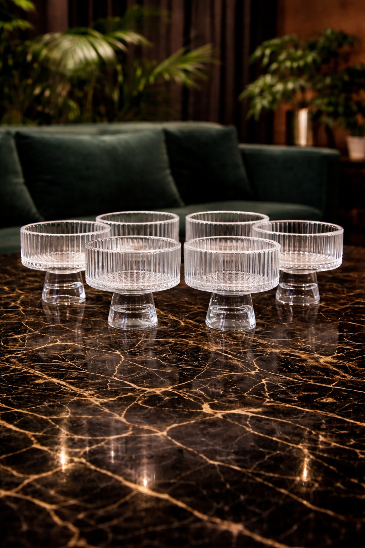 6’lı Origami Çizgili Cam Lokumluk Şekerlik | Kahve Yanı Drajelik | Elysia Çizgili Ayaklı Sunumluk Seti | 70 ml Şıklığı ve zarafeti bir araya getiren 6’lı Origami Çizgili Cam Lokumluk Seti, kahve sunumlarınıza estetik bir dokunuş katar.; Elysia tarzı çizgili cam tasarımı ve zarif ayaklı formu sayesinde lokum, draje, şeker, çikolata ve küçük atıştırmalıklar için ideal sunum kaplarıdır.; 70 ml hacmi ile porsiyonluk servisler için mükemmel boyuttadır.; Hem günlük kullanım hem de misafir sofraları için şık, modern ve kullanışlı bir alternatiftir.; Kalın ve dayanıklı cam yapısı sayesinde uzun ömürlü kullanım sunar.; Kahve yanı ikramlarında, nişan-söz masalarında, özel gün sunumlarında ve dekoratif amaçlı kullanıma uygundur.; Minimal boyutu sayesinde tepsi sunumlarına kolayca uyum sağlar ve masada zarif bir görünüm oluşturur.; Ürün Özellikleri Paket İçeriği: 6 adet cam lokumluk / drajelik Hacim: 70 ml (her biri) Malzeme: Yüksek kaliteli şeffaf cam Tasarım: Origami çizgili, Elysia tarzı, ayaklı model Kullanım Alanı: Lokum, draje, şeker, çikolata, sosluk, kahve yanı ikramlık Stil: Modern, zarif, dekoratif Kahve keyfinizi tamamlayan şık bir sunum ürünü arıyorsanız, 6’lı ayaklı cam lokumluk seti sofralarınıza hem estetik hem fonksiyonel bir dokunuş katacaktır.